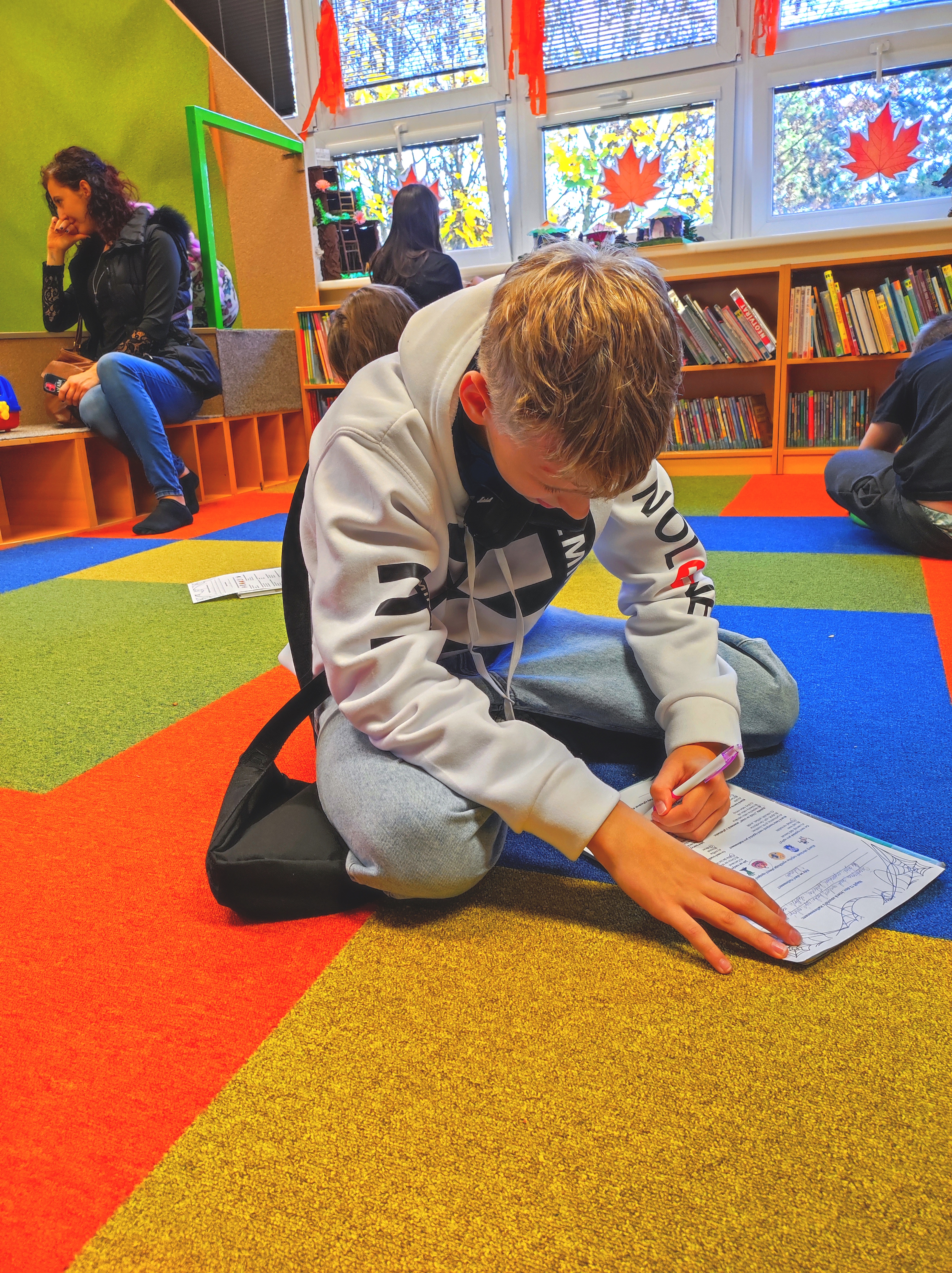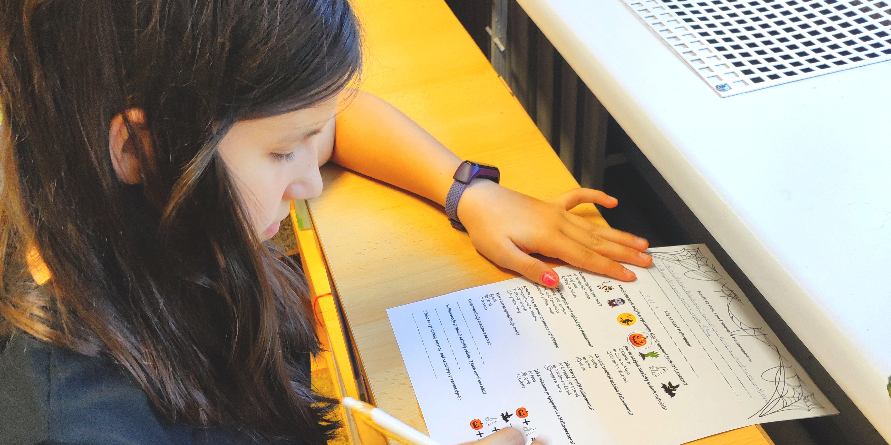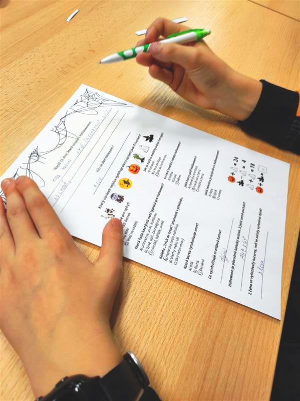 Všechny děti se ve 14:30 hodin začetly do halloweenského testíku plného záludných otázek. Prokázali tak své znalosti spojené s dýněmi, upíry nebo kostlivci.
