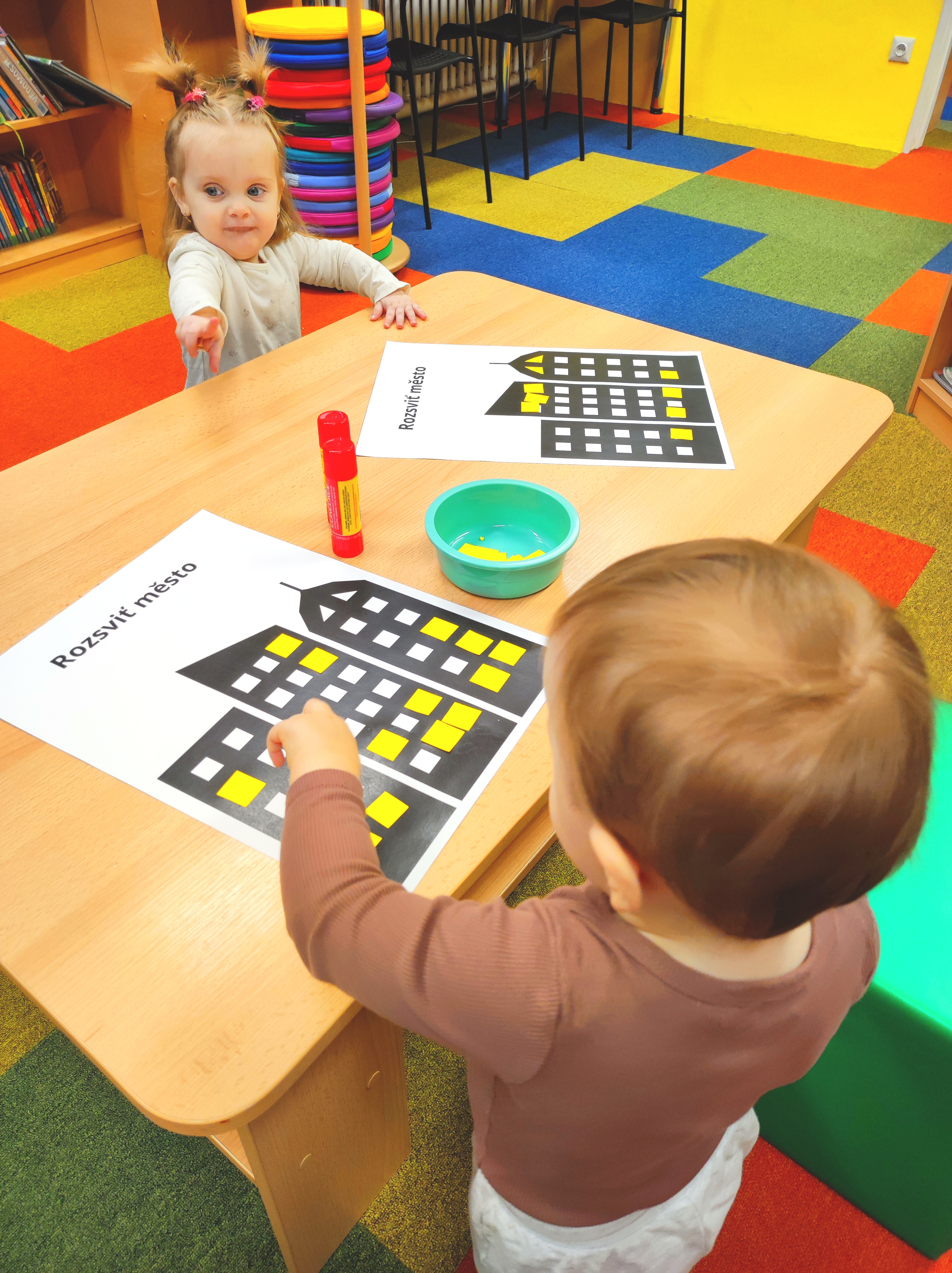 Děti si procvičily barvy, potrénovaly jemnou motoriku při rozsvěcování města a prohlížely si tajemné prosvětlovací obrázky. Nechyběla ani jednoduchá dílnička a oblíbená světelná podložka.