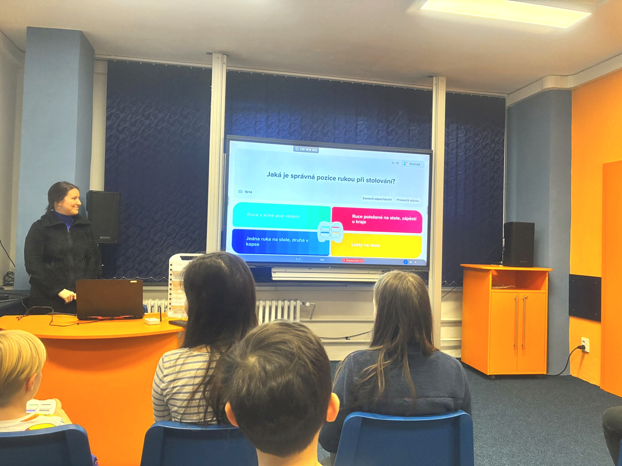 Děti soutěžily ve vědomostním kvízu na téma etiketa a vítěz si odnesl ještě teplou pizzu.