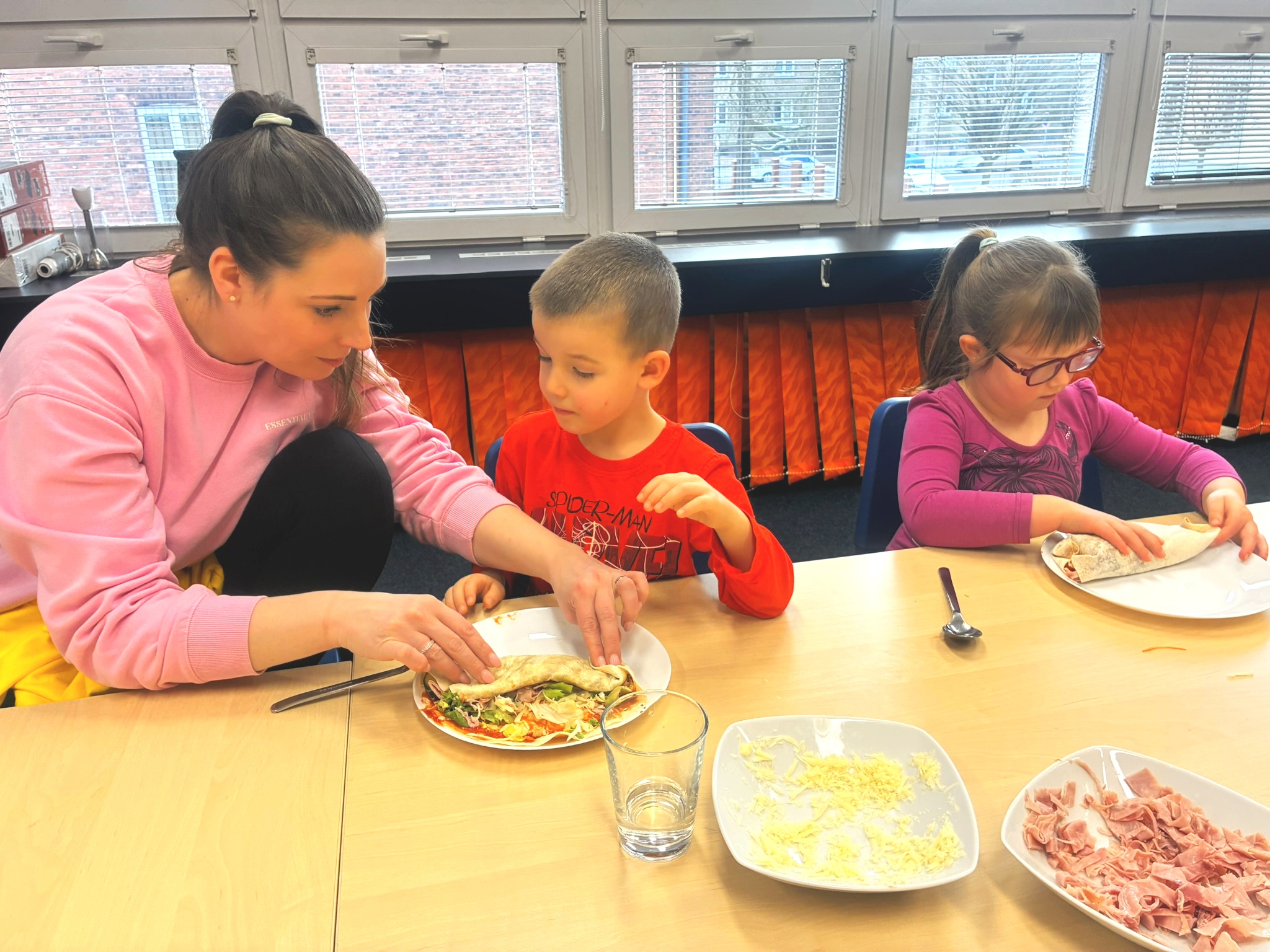 Byla skvělá atmosféra a děti si zvládly přichystat super svačinku - šunkový vrap. Každý si naložil dle svých chutí co má rád, pak stačilo jen zamotat tortilu a pustit se do jídla. Všem moc chutnalo a my už se mo ctěšíme na příště.