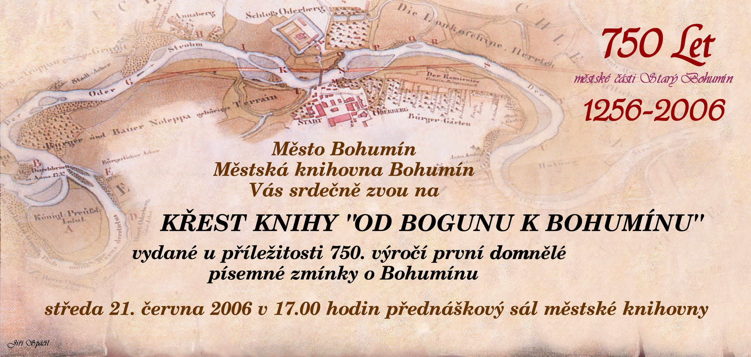 Srdečně zveme všechny zájemce na slavnostní křest knihy, kterou vydává město Bohumín u příležitosti 750. výročí první domnělé písemné zmínky o Bohumínu.