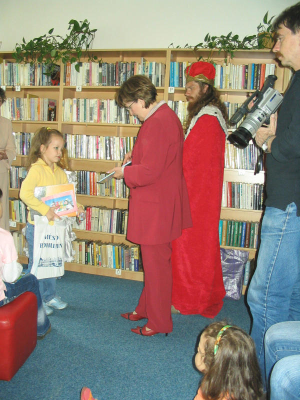 Druhým rokem byly pozvány děti prvních tříd ze Základní školy ve Skřečoni, aby byly slavnostně pasovány králem pohádek Šimonem I. na čtenáře. Za pomocí písmenkové víly a za přítomnosti starosty města Ing. Petra Víchy, místostarostky Mgr. Věry Palkové, paní učitelky, maminek, tatínků i babiček král Šimon I. pronesl slavnostní slib čtenáře, děti slíbily, že se ke knihám budou chovat jako ke svým přátelům a pak přiložil každému čtenáři na rameno meč, kterým byl slavnostní slib stvrzen.