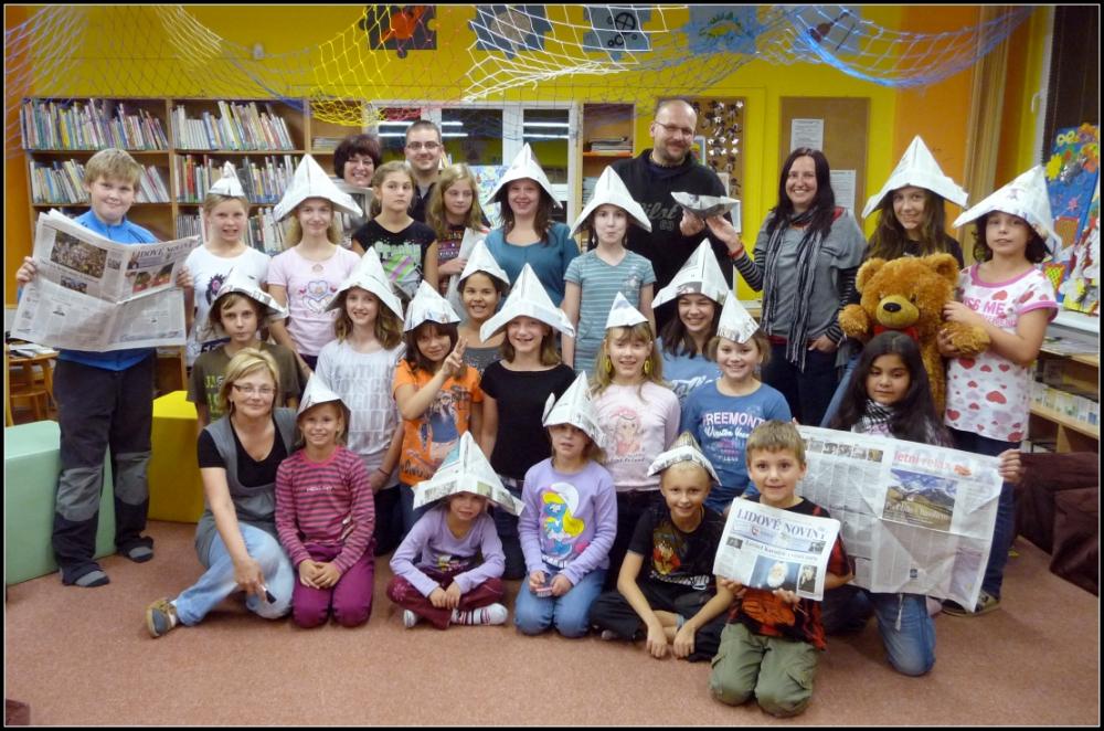 V pátek nás čekalo Novinářské nocování v knihovně. To je odměnou pro nejšikovnější děti navštěvující naši knihovnu. Sešlo se jich letos 23 a s nimi dvě knihovnice, paní učitelka a tři hosté. Pro děti byl připraven bohatý program - čekal je večer plný her, soutěží, čtení, výtvarných dílniček, ale také setkání se zajímavými hosty z oblasti novin a televizního zpravodajství. Naše pozvání přijali Lucie Balcarová, Lukáš Kania a Pavel Čempěl. Letošní nocování jsme zakončili stezkou odvahy tajemnou noční knihovnou.