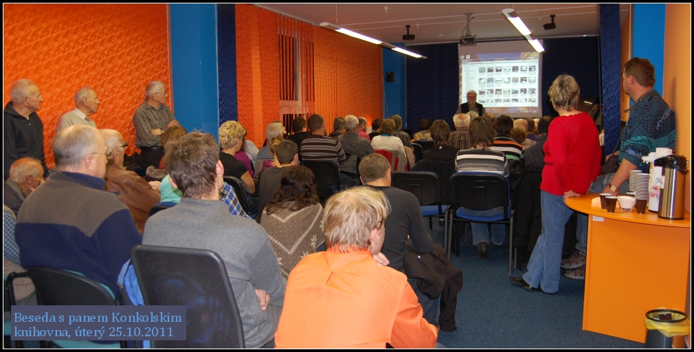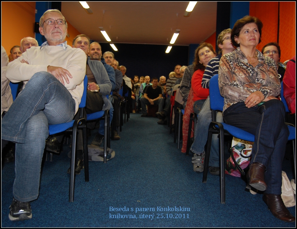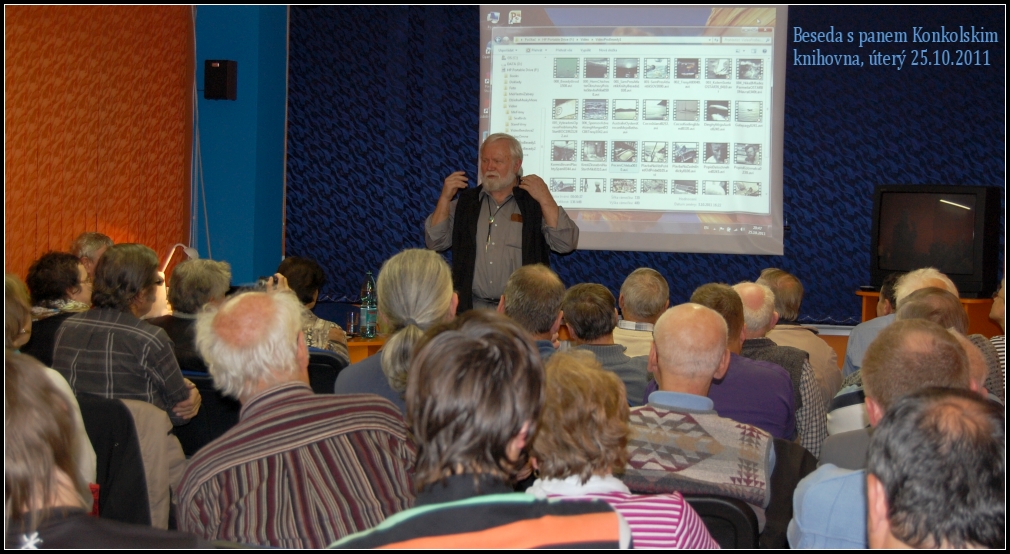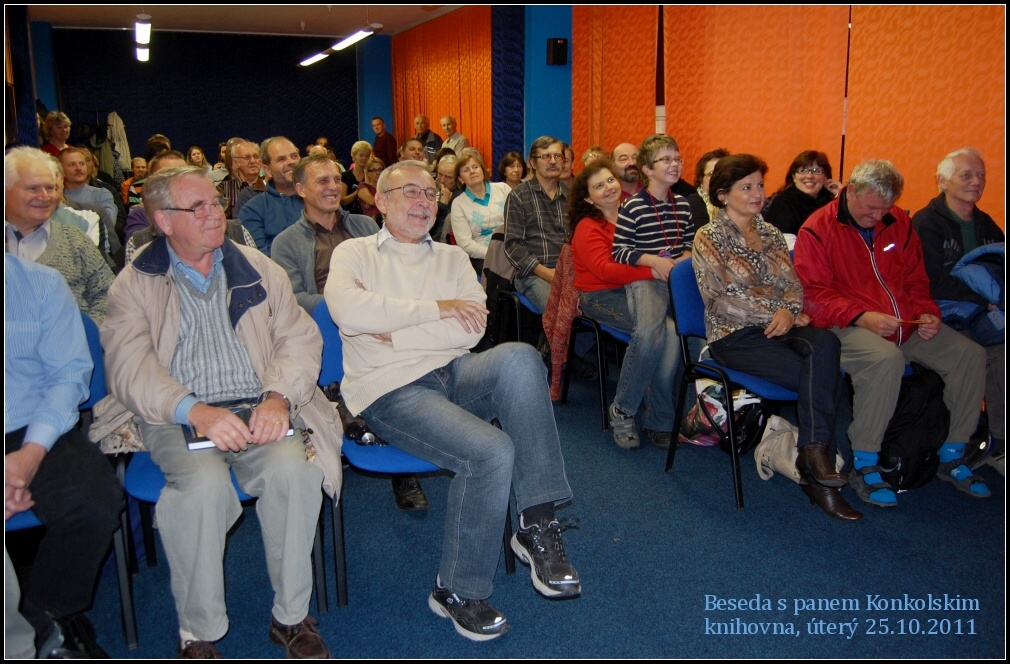 Na jeho přednášku s názvem Zápas o Atlantik se přišlo do naší knihovny podívat 85 návštěvníků z řad starých známých, spolupracovníků, přátel či vodáckých nadšenců. Knihovnou se nesla témata z jeho cest po moři, nástrahy organizace v tehdejšího režimu v Česku, život v USA, radosti i strasti života na moři a také z dětství Richarda Konkolského a počátků jeho záliby v mořeplavectví.