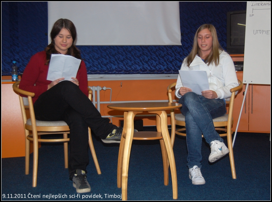 Středa 9. 11. se nesla ve znamení vědeckofantastické literatury. Vyhlašovali jsme vítěze literární soutěže o nejlepší sci-fi povídku, kterou psali žáci bohumínských základních škol. Aktivně se zúčastnily školy ČSA a Masarykova. Všichni dětští autoři si odnesli odměnu za svou práci a pět nejlepších povídek krásné ceny. Kromě toho si děti, rodiče i učitelky poslechli všechny vítězné povídky z úst profesionálních i ochotnických herců. Součástí večera byla i přednáška Petra Pěnkavy o základech sci-fi literatury.