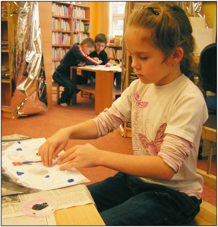 Po celý týden mohly děti vyrábět na dětském oddělení s Janou Gieckovou roboty, marťánky, ufony či kosmické rakety. Rozvíjely svou představivost o daleké minulosti či budoucnosti. Výtvarná díla budou vystavena v prostorách knihovny.