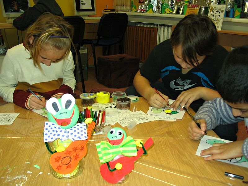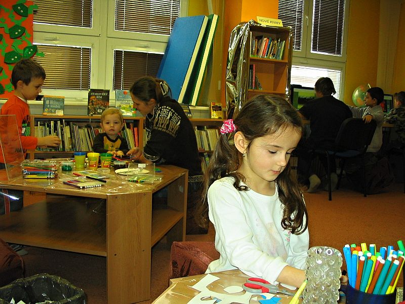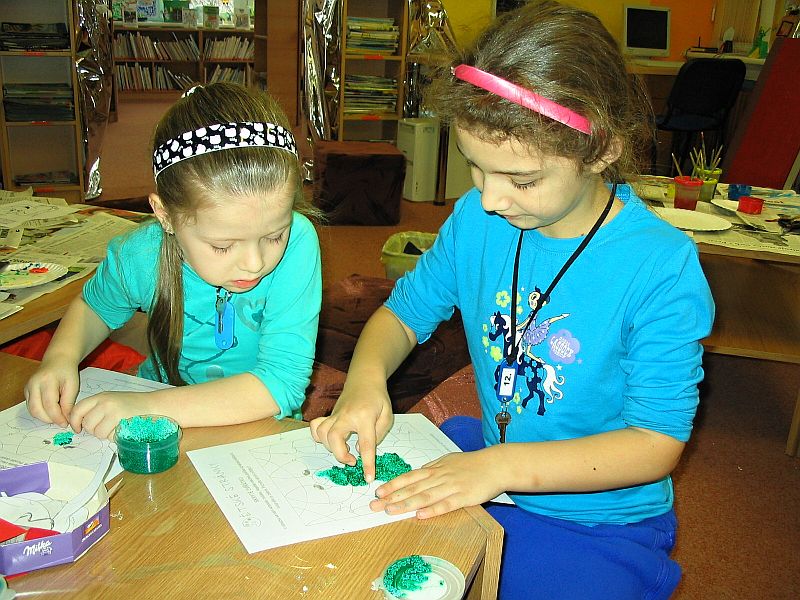 Během jarních prázdnin dětské oddělení připravilo pro děti program v podobě výtvarných dílniček. Začali jsme šnečí štafetou, následovaly želvičky z krabičky, tajemné zvíře, barevný svět a poslední den jsme ukončili malířem popletou.