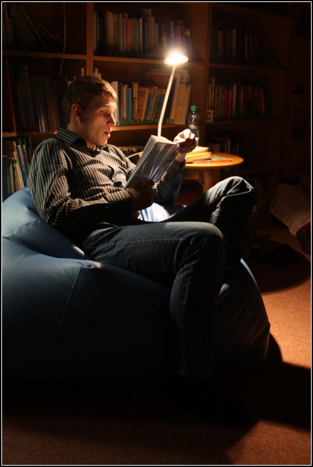 Po půlnoci se knihovna pomalu začala ukládat ke spánku. A čím se nechali uspat - alespoň ti nejmenší - četbou. Do knihovny zavítal poslední host, herec Těšínského divadla Petr Sutorý. Ty menší děti usly již během četby, ale k těm starším spánek ne a ne zavítat. A tak se klábosilo až do rána a spánek si nechali na doma.