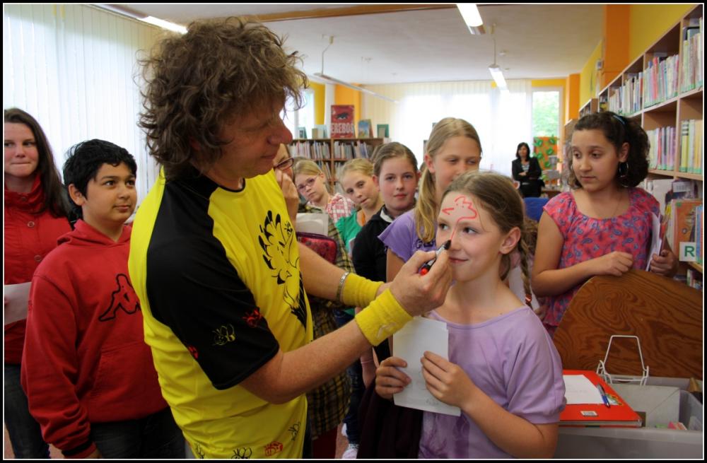 Děti si užily spoustu legrace a na závěr se jim pan Dudek podepsal nejen do knih, na papír, ale také na tvář, ruce či krk.