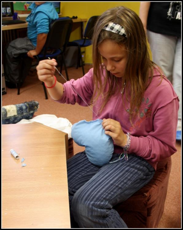 Poslední červnovou dílničku jsme zakončili veselým polštářkem. Děti čekají prázdniny - dovolená, tábory - a v kufru tento polštářek by určitě neměl chybět.