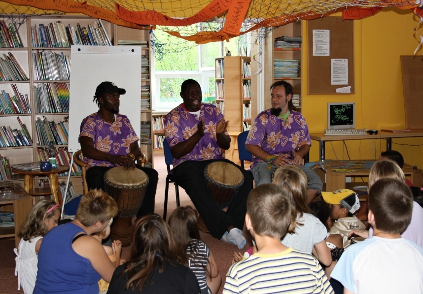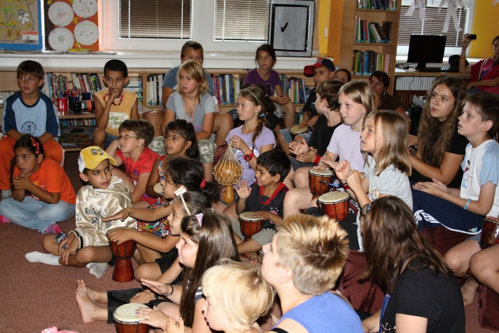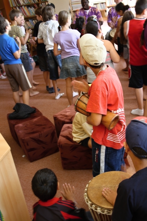 V programu bylo zahrnuto promítání filmu, ukázky písní a tanců, které se děti mohly naučit a samotné bubnování si vyzkoušet.