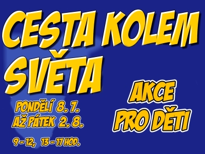 Děti budou moci od pondělí 8. 7. do pátku 2. 8. (mimo sobotu a neděli) mezi 9 - 12 a 13 - 17 hodinou přijít do knihovny a vykonat úkol pohybový, výtvarný i vzdělávací týkající se cizích zemí.