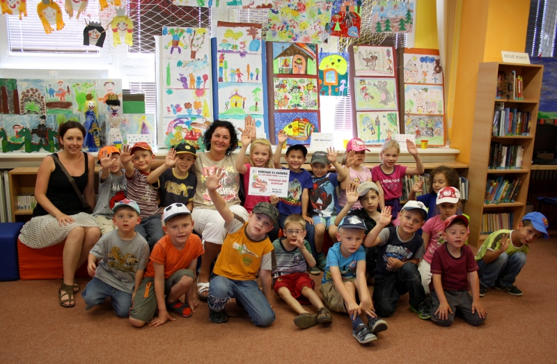 Ještě před prázdninami si děti z mateřských škol přišly do knihovny pro odměnu za výtvarnou soutěž „Pohádková země Nesmyslov.“