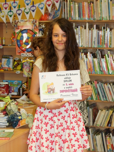 Superčtenářem se stává nejlepší čtenář školního roku 2013/2014 a podmínky pro to jsou jednoduché. Při každé návštěvě knihovny získávají čtenáři body za půjčení knih nebo časopisů, při účastí na různých akcích dětského oddělení, ale také body ztrácejí za špatné řazení knih nebo upomínky.