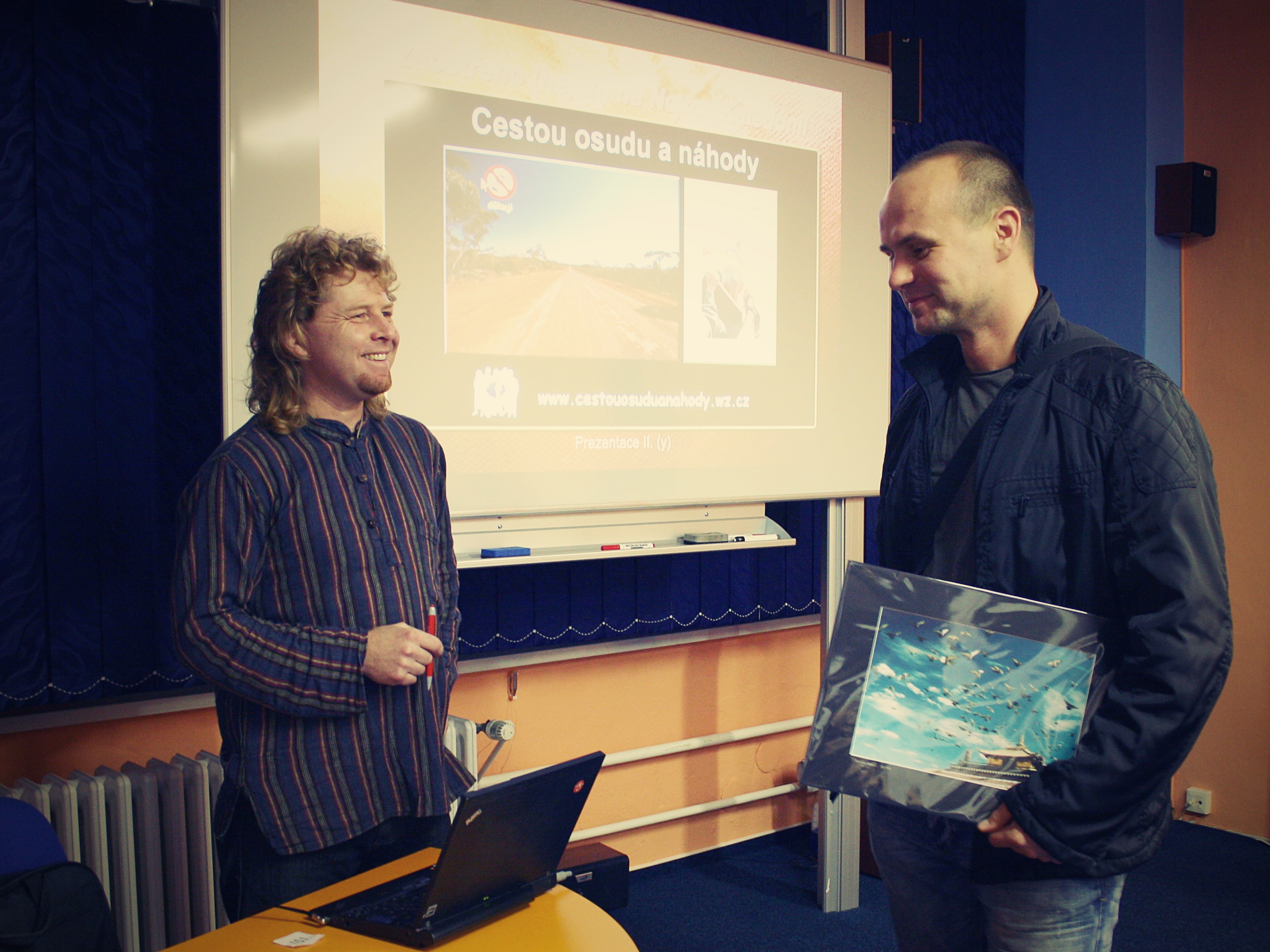V průběhu večera a poutavého vyprávění rozdával Roman Vehovský aktivním zúčastněným slosovatelné lístečky s čísly. Na konci přednášky byl vylosován jeden, jehož majitel zdarma získal autorovu knihu Cestou osudu a náhody. „Mám radost, doma si knihu přečtu,“ nechal se slyšet vylosovaný vítěz.
