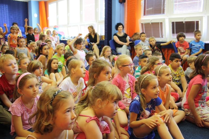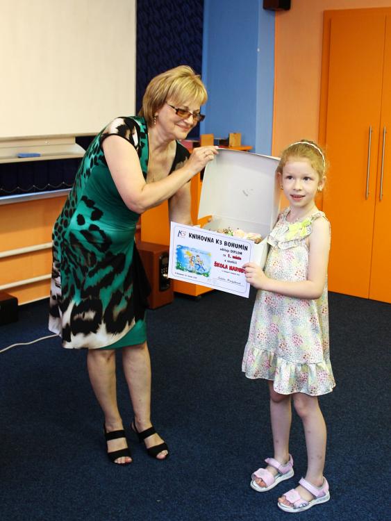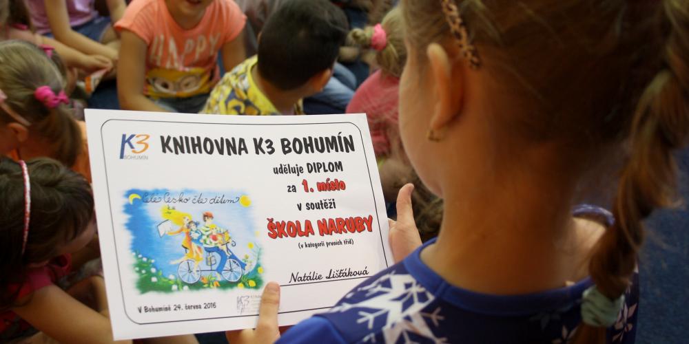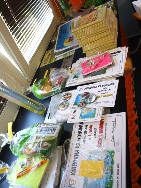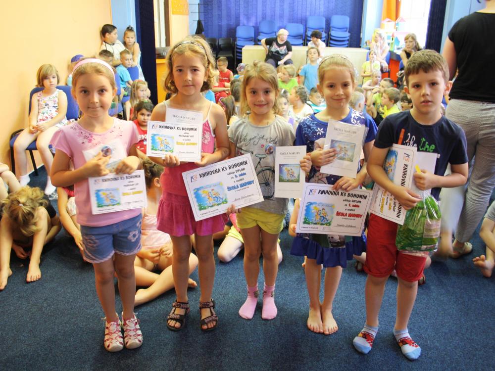 Letos knihovna oceňovala ty nejlepší z celoročních soutěží Škola naruby, Superčtenář, Knížka pro prvňáčka, nová soutěž Pohádkové království a Zahrajem si na básníka. Předání diplomů, dortů, odznaků a věcných cen proběhlo v pátek 24. června 2016 v dětském oddělení.