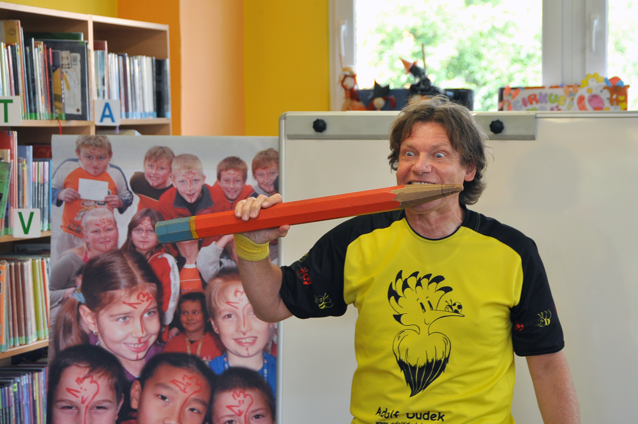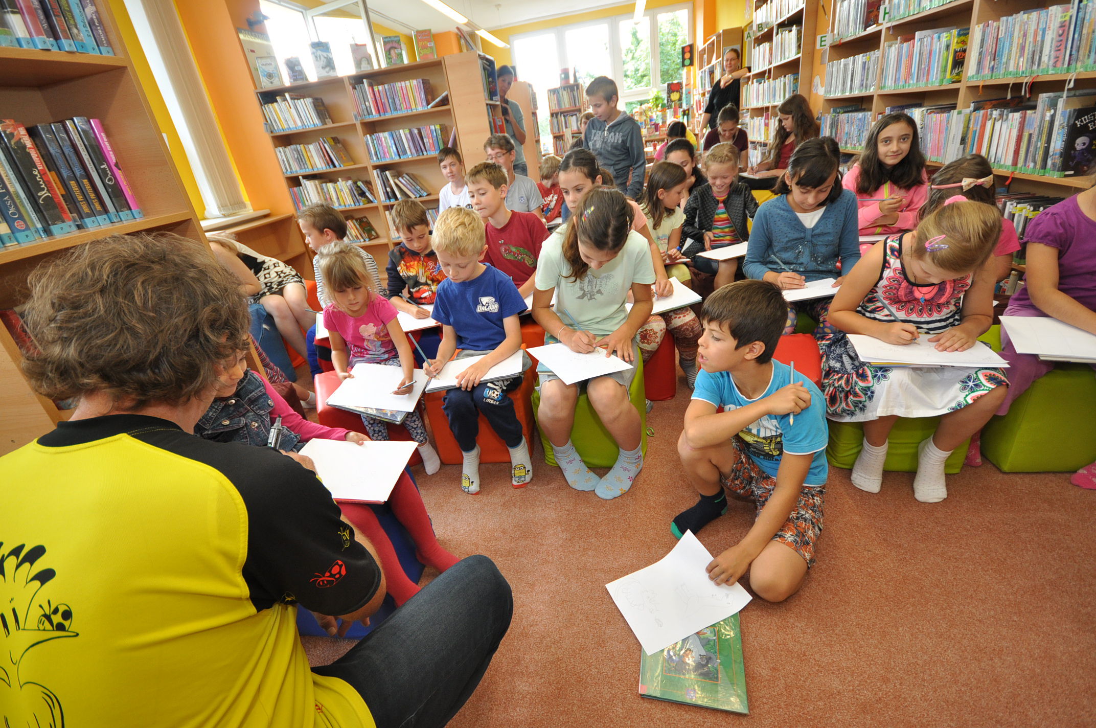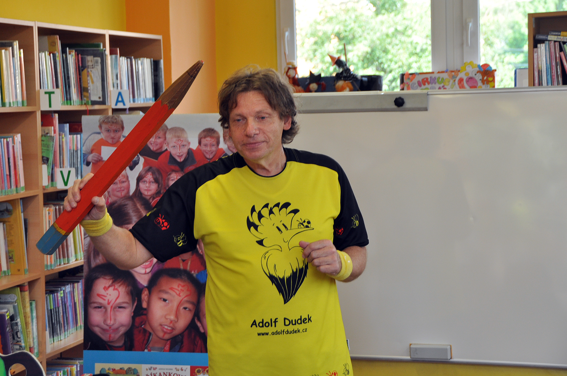 Adolf Dudek zavítal se svou ilustrátorskou show do bohumínské knihovny.
