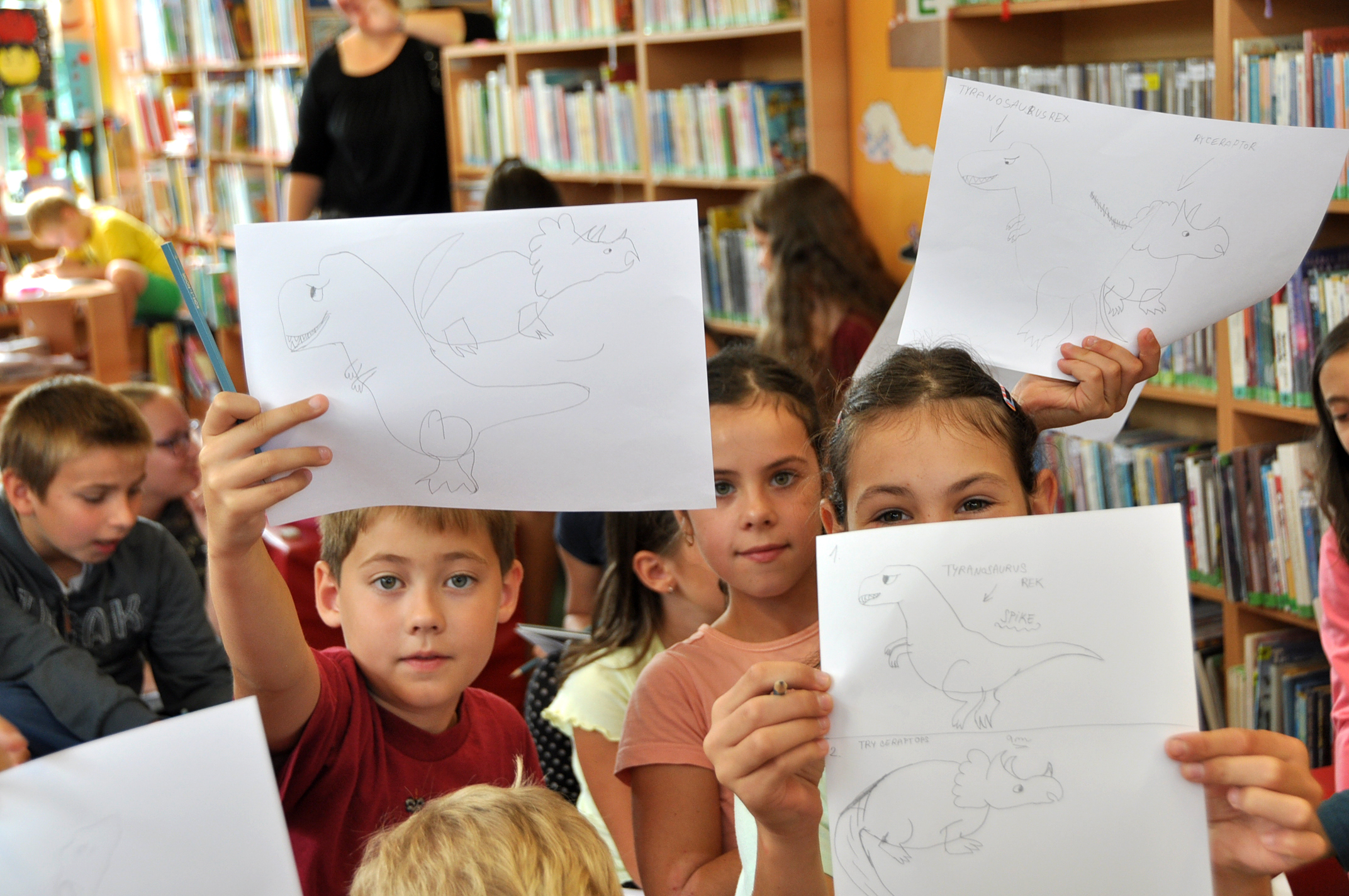"Celý srpen máme v knihovně každodenní program zaměřený na období pravěku, děti vyráběly dinosauří vejce, odlévaly sádrové odlitky nebo malovaly dinosaury. Dnešek je takovou odměnou nejen pro děti, ale také pro nás. Pan Dudek je totiž neskutečně zábavný," vysvětluje vedoucí bohumínské knihovny Magdaléna Fedorowiczová. Jak rozložit proporce, na co si dát při kreslení pozor a hlavně jak zdárně namalovat třeba tyranosaura Rexe?