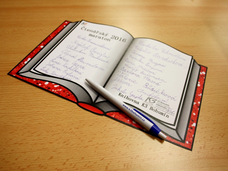 Celotýdenní doprovodnou akcí byl Maraton čtení, kterého se zúčastnilo úžasných 469 čtenářů v dětském oddělení a na pobočkách. Například v dětském oddělení se v hlasitém předčítání střídalo 288 dětí. Přečetly 294 stran. Na pobočce ve Skřečoni přečetlo tichou formou 151 dětí 885 stran.