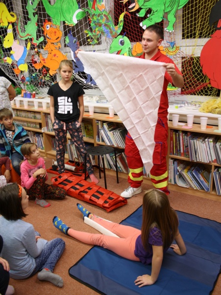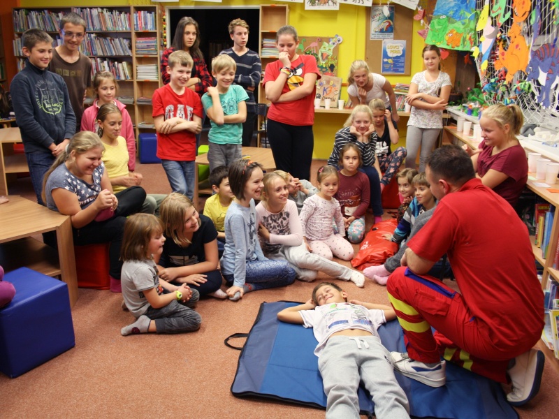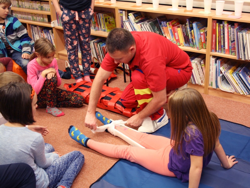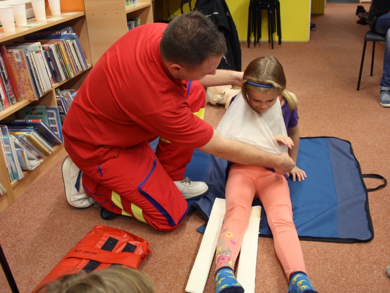 „Třiatřicet dětí vyzkoušelo na figuríně masáž srdce, přenášení raněných, fixace a bandáž končetin, tréninkově mezi sebou volaly záchrannou službu a učily se podávat správné informace imaginárnímu dispečerovi“, uvedla vedoucí knihovny Magdaléna Fedorowiczová.