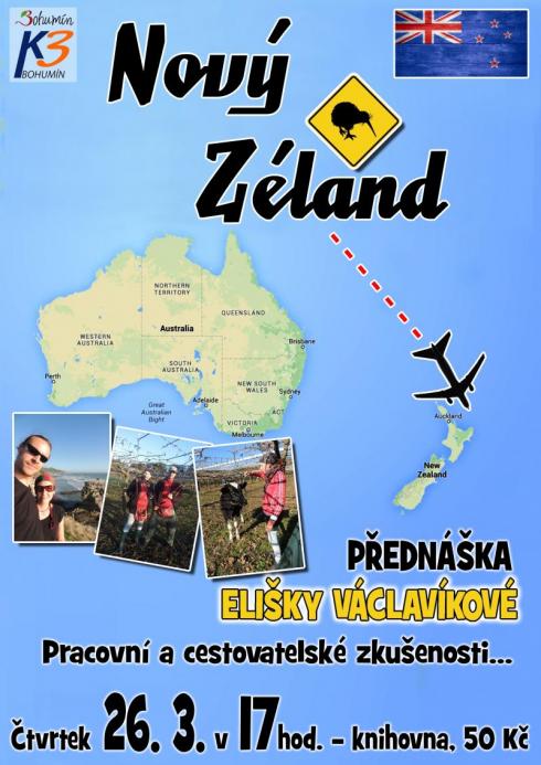 PŘEDNÁŠKA, BESEDA: Roční pracovní zkušenost, cestování a krásy Nového Zélandu přiblíží Eliška Václavíková.