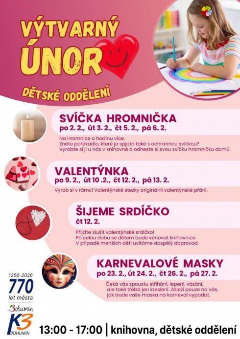 po 2.2., út 3.2., čt 5.2., pá 6.2. | 13-17 hod. (mimo středu) | Knihovna - dětské oddělení