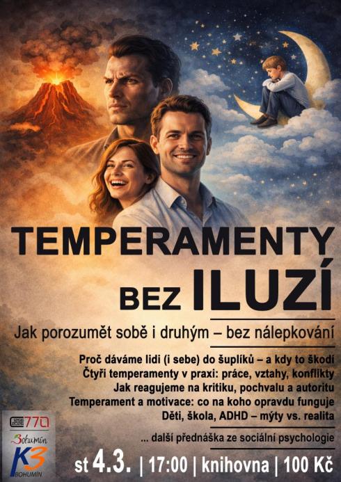Přednáška se zaměřuje na čtyři základní temperamenty – cholerik, sangvinik, flegmatik a melancholik – a jejich vliv na chování, vztahy, komunikaci, práci i výchovu dětí. Ukazuje, proč má smysl lidi chápat, ne je nálepkovat, a jak s různými typy osobností jednat tak, aby spolupráce fungovala a nevznikalo zbytečné napětí.