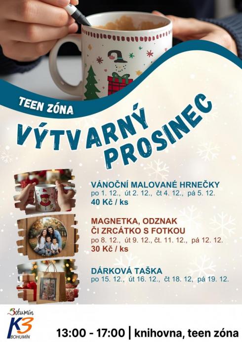 po 15.12., út 16.12., čt 18.12., pá 19.12. | 13 - 17 hod. (mimo středu) | Knihovna, Teen zóna